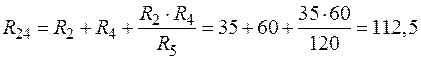 Преобразуем звезду резисторов R2, R4, R5 в эквивалентный треугольник резисторов (рис. 23):
