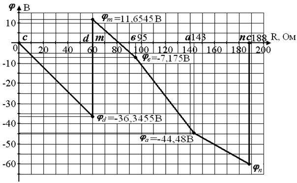 7. Начертим потенциальную диаграмму для контура сdmвanc (рис. 18):