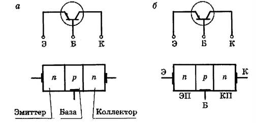 Рис. 26. Схематическое и условное изображение биполячрных транзисторо