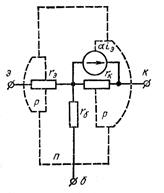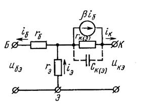 Рис. 30. Схема замещения транзистора: а- физические параметры;