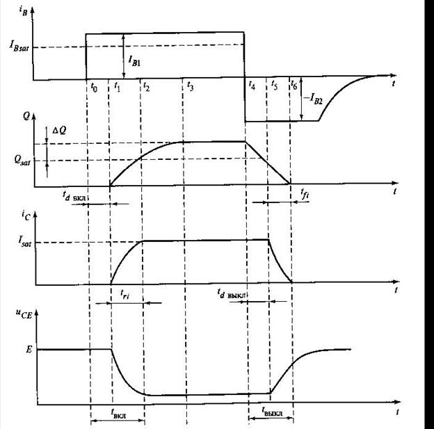 t0 транзистор находиться в режиме отсечки (выключен). При t = t0 в базу от источника управления поступает импульс тока, величина которого больше граничной (iB1