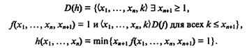 г) операция т, которая ставит в соответствие частичной функции f из (N)n+1 в N частичную функцию h из (N)n в N, которая определяется как