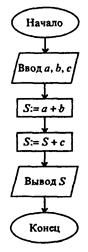 Эти структуры можно комбинировать одну с другой - как путем организации их следований, так и путем создания суперпозиций (вложений одной структуры в другую) - сколь угодно разнообразно для выражения логики алгоритма решения любой задачи. Используя описанные структуры, можно полностью исключить использование каких-либо еще операторов условного и безусловного перехода, что является важным признаком структурного программирования. Направление выполнения команд часто изображают сверху вниз. На рис. 1.24 - 1.26 приведены простейшие примеры структурной реализации алгоритмов работы с величинами.