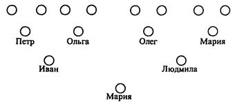 Во всех рассмотренных выше структурах отдельные элементы (компоненты, поля, составляющие) структуры были формально равноправны. Существует, однако, широкий круг задач, в которых одни данные естественным образом «подвязаны» к другим. В этом случае возникает соподчиненная (иерархическая) структура данных. Ограничимся конкретным примером. Представим себе генеалогическое дерево, корень которого - имя человека, на следующем уровне - имена его родителей, еще на следующем - имена родителей родителей и т.д. Такая структура называется двоичным деревом, рис. 1.36.