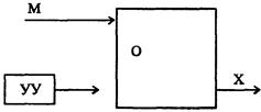 Рис. 1.45. Алгоритм управления, реализуемый управляющим устройством УУ, которое обеспечивает слежение за возмущением М и компенсацию этого возмущения, без использования управляемой величины Х