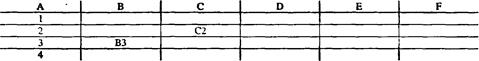 Номер ячейки определяется обычным координатным способом, например, ячейка ВЗ и т.д.