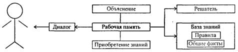 | Интерпретация Прогноз Диагностика Проектирование Планирование Наблюдение Отладка Ремонт Обучение Управление | Описание ситуации по информации, поступающей от датчиков Определение вероятных последствий заданных ситуаций Выявление причин неправильного функционирования системы по наблюдениям Построение конфигурации объектов при заданных ограничениях Определение последовательности действий Сравнение результатов наблюдений с ожидаемыми результатами Составление рецептов исправления неправильного функционирования системы Выполнение последовательности предписанных исправлений Диагностика и исправление поведения обучаемого Управление поведением системы как целого |
