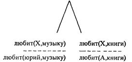 аргумент А заголовка есть переменная, поэтому она может соответствоватьX, т.е. получает значение А=юрин; вторые аргументы совпадают. Теперь тело правила образует новое множество целей для согласования. Получаем целевое дерево: