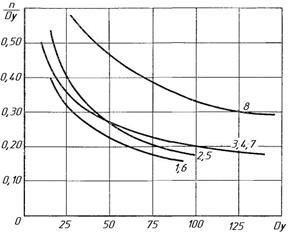 Загальна закономірність кривих у тому, що зі збільшенням діаметра умовного проходу величина відносного перекриття зменшується, наближаючись до якоїсь постійної величини.