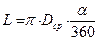 Довжина дуги перекриття, яка відповідає номінальному значенню перекриття, визначається за формулою