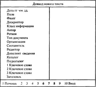 ИПМ представляет собой текстовый файл, состоящий из двух полей: поля поискового образа документа и поля записи данных. Каждое из полей распадается на подполя - элементы данных. Рассмотрим структуру и содержание записи отдельно для каждого поля.