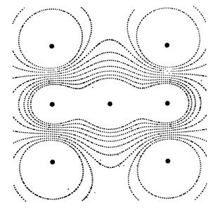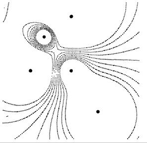 Учитывая трудности визуализации трехмерных изображений, целесообразно ограничиться (по крайней мере вначале) рассмотрением ситуаций, когда все заряды лежат в одной плоскости; тогда силовая линия, начинающаяся из любой точки данной плоскости, из этой плоскости не выйдет, и получится легко воспринимаемая картина.