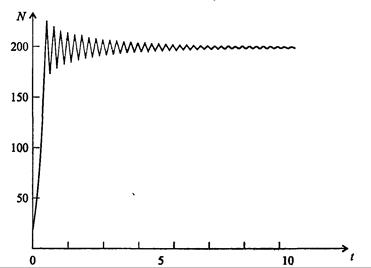 Рис. 7.42. Динамика численности популяции при No =25, К = 200, r = 3