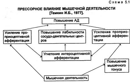 Физические упражнения действуют на сосудистый тонус избирательно. Эта избирательность влияния мышечной деятельности — результат изменения лабильности нервных центров под систематическим действием проприоцепции. В состоянии детренированности и при патологии регуляция осуществляется по механизму сердечно-сосудистая системам моторика, что ведет к нарушению гармонии между гемодинамикой и мышечными напряжениями. Систематическая тренировка перестраивает патологический динамический стереотип, и вся деятельность системы кровообращения попадает под доминирующее влияние моторного анализатора. Регуляция начинает осуществляться по направлению моторика -> сердечно-сосудистая система. Доминанта же моторного анализатора присуща