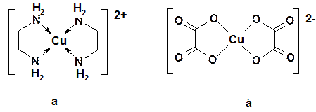Простой линией обозначается внутрикомплексная химическая связь, образованная между катионом металла и отрицательно заряженным анионным лигандом (б), а стрелочкой – донорно-акцепторная связь между катионом металла и электронейтральным лигандом (а).