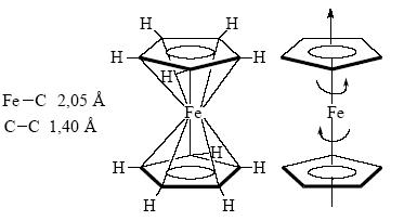Это соединение стало родоначальником широко изученного теперь класса так называемых сэндвичевых соединений. Потребовалось около года, чтобы понять, как построено это соединение. Выяснилось, что атом железа "запечатан" между двумя высокосимметричными пятичленными кольцами: