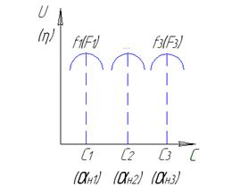 Прикладом екстремального об’єкту може бути котел теплових електричних станцій. В топку котла подається повітря кількість якого дещо перевищує ту кількість яка теоретично необхідна для повного згорання палива. Відношення цих кількостей називається коефіцієнтом надлишку повітря aн. Правильність вибору цього коефіцієнту визначає економічність використання палива. Основним збуренням для котла є змінювання споживання пари. Залежність ККД котла h від коефіцієнта надлишку повітря aн мають екстремуми для різних витрат пари F (рис. 4.16). Завданням систем екстремального керування є зміна подачі повітря в топку таким чином щоб ККД котла мав би максимально можливе в даних умовах значення.
