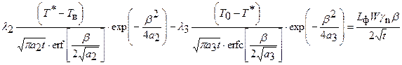 Определив β из (2.36) как функцию λ2, а2, λ3, а3, Т*, Тв, Т0, Lф, W и γn, и принимая во внимание, что h=