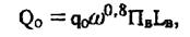 где q0 — тепловыделение при окислительных процессах, приведенное к скорости рудничного воздуха ω= 1 м/с, Вт/м2; q0 = 3,5-4,5 Вт/м для негазоносных пластов и в 0,5-0,9 раза меньше для газоносных.