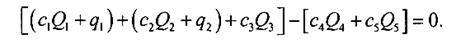 где с, - содержание газа в начале i-й подающей воздух к узлу выработки; Qi, qi, - соответственно расход воздуха и суммарный дебит всех источников и стоков в i-и выработке; п1 — число выработок, подающих воздух к узлу; сj, Qi - соответственно содержание газа и расход воздуха в j-й отводящей воздух от узла выработке; n2 - число выработок, отводящих воздух от узла.