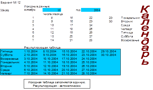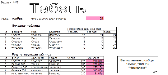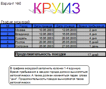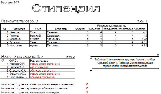 В результате выполненной лабораторной работы студент должен продемонстрировать преподавателю готовый файл Таблицы.xls, содержащий 4 листа:
