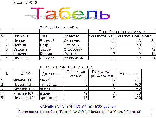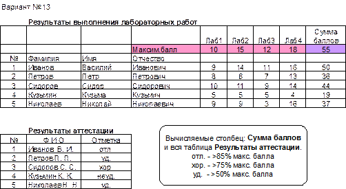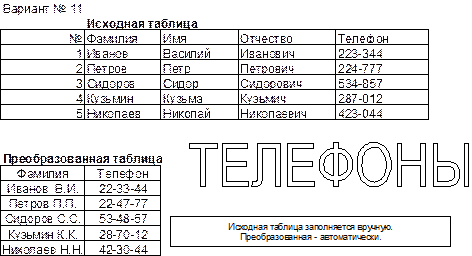 4 Лист 3 (<название своего варианта задания>) – индивидуальное задание: Преобразование таблиц;
