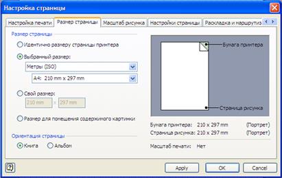· настройка размера страницы заключается в определении типа (Опция Выбранный размер – Pre-define Size: Metric (ISO)) и размера формата (А5, А4, А3 и т. д.) рабочего листа;