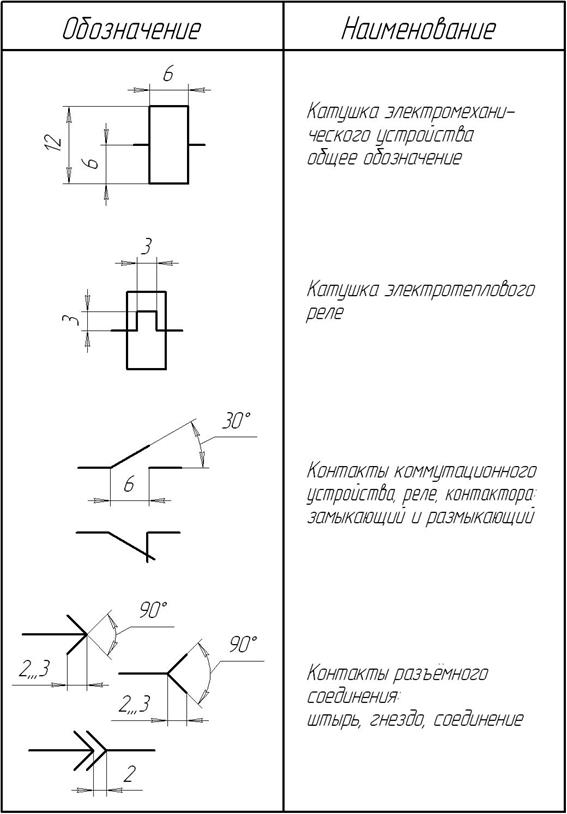 | K | Реле, контакторы, пускатели | · KA – Реле токовое · KK – Реле тепловое · KM – Контактор, магнитный пускатель · KT – Реле времени · KV – Реле напряжения |