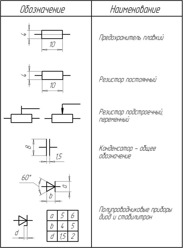 1. Подготовить библиотеку элементов. Условные обозначения элементов и их маркировку на схемах необходимо выполнить в соответствии с установленными ГОСТ (приложение 3, табл. 1, 2).