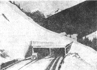 3) вертикально направленная сила Fd, обусловленная весом отложенного снега (в галереях, расположенных в зонах отложения лавин, давление, вызываемое этой нагрузкой, может приближаться к 60 кПа);