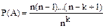 M = n(n-1)…(n-k+1) – число благоприятных ЭИ.