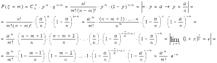 n•p→ α, то вероятность m успехов может быть рассчитана по следующей приближенной формуле: