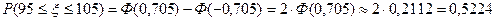Какова вероятность того, что при 200-кратном бросании монеты орел выпадает от 95 до 105 раз?