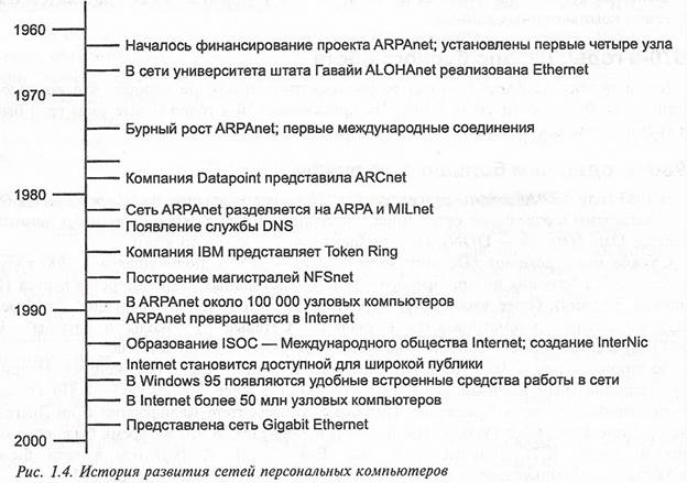 На рис. 1.4 показана диаграмма наиболее существенных событий истории развития компьютерных сетей.