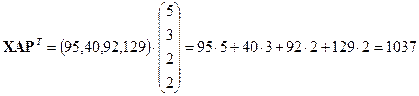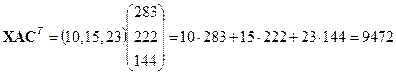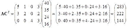 Стоимость ткани, расходуемой на пошив изделия каждого вида, найдем, перемножив матрицу