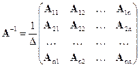 Матрица, обратная матрице А, обозначается через А-1, так что В = А-1. Обратная матрица вычисляется по формуле