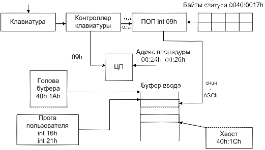В прерывании клавиатуры можно выделить 3 основных шага: