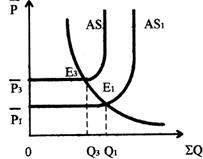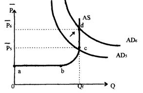 2) вертикального (участок cd),соответствующего полной занятости (называемого также классическим - по экономической школе, последователи которой утверждают, что вся кривая AS в нормальной экономике состоит из одного этого отрезка);