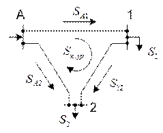 В неоднородной сети естественное и экономическое распределение потоков мощности не совпадают. Наличие неоднородности вызывает протекание контурного уравнительного потока мощности:
