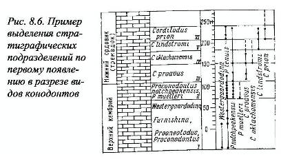 Так выделяются многие зоны, лоны и биостратиграфические подразделения по конодонтам и другой микрофауне (рис. 8.6).