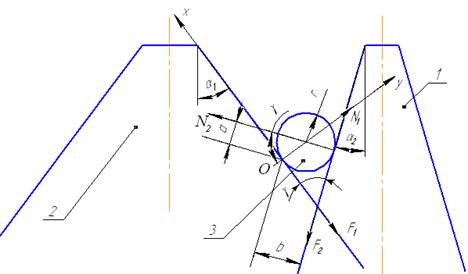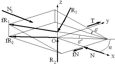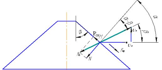 Рис 4.3. Схема сил при движении ножа в стебле со скольжением