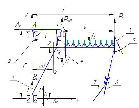 Ax, Bx, By- реакции в месте заделки шпренгеля.