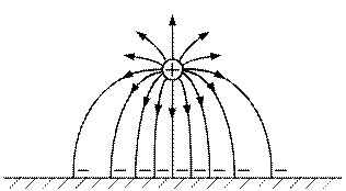 В результате электростатической индукции на поверхности проводящего тела выступают заряды. Плотность их меняется с изменением координаты x. Эти заряды влияют на поле и их влияние надо учитывать. Учесть влияние зарядов, выступивших на поверхности проводящего тела вследствие электростатической индукции, очень сложно, так как надо знать закон распределения их по поверхности проводящего тела. Данную задачу легко можно решить, используя метод зеркальных изображений. Согласно методу влияние зарядов, расположенных на поверхности проводящего тела, учитывается введением фиктивного сосредоточенного заряда, расположенного в зеркальном отражении относительно границы, при этом считается, что все пространство заполнено диэлектриком. Фиктивный заряд равен по модулю действительному и имеет противоположный знак.