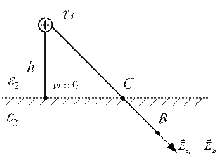 б) Если реальный провод и исследуемая точка находятся в разных средах, то поле в любой точке нижнего полупространства определяют как поле от некоторого дополнительного заряда