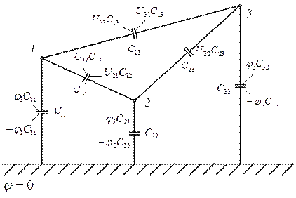 Перемещая точку М с первого на второй и третий провод, получим систему уравнений