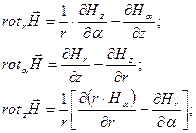 Выражение проекций ротора в цилиндрической и сферической системах координат