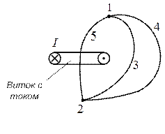 Падение магнитного напряжения между точками 1 и 2 по пути 1-3-2 равно падению магнитного напряжения между точками 1 и 2 по пути 1-4-2 в том случае, когда эти пути (1-3-2 и 1-4-2) образуют замкнутый контур, ток внутри которого равен нулю. Если же эти пути образуют замкнутый контур, ток внутри которого не равен нулю (например контур 1-3-2-5-1), то падения магнитного напряжения по пути 1-5-2 и по пути 1-3-2 не будут равны и будут отличаться на значение тока, охваченного контуром. Т.е. по закону полного тока можно записать:
