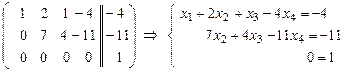 Если в ходе проведения метода Гаусса появляются невыполнимые равенства типа и т.д., то исследуемая линейная система несовместна.