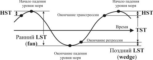 Рис. 6.3. Схема, иллюстрирующая распределение системных трактов в пределах элементарного эвстатического цикла