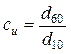 где d60 – диаметр частиц, меньше которого в данном грунте содержится 60 % (по массе) , d10 – диаметр частиц, меньше которого в данном грунте содержится 10 % (по массе).